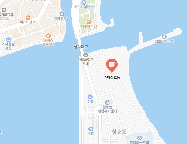 카페청호동은 아바이 마을 건너편 청호해변에 위치해 있습니다.