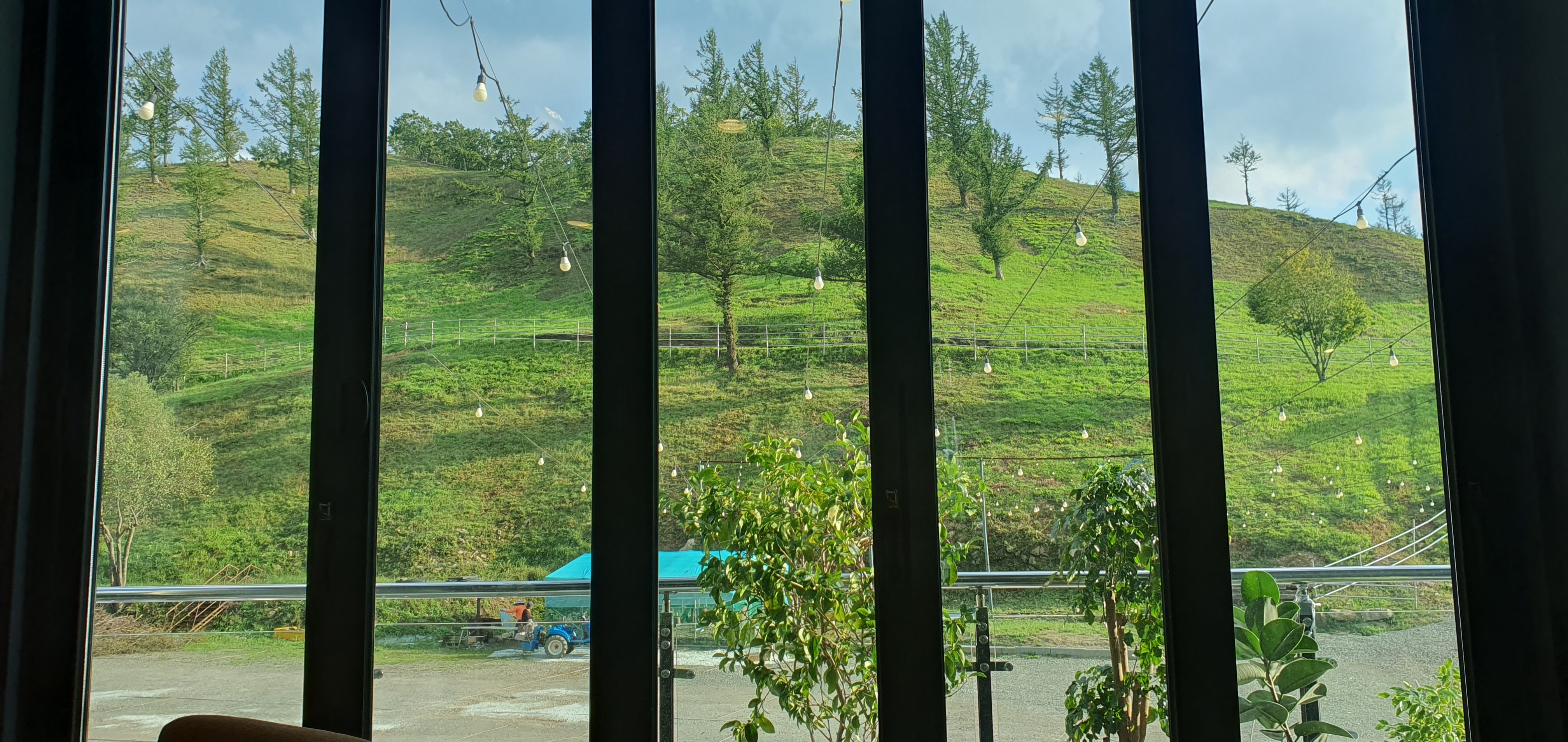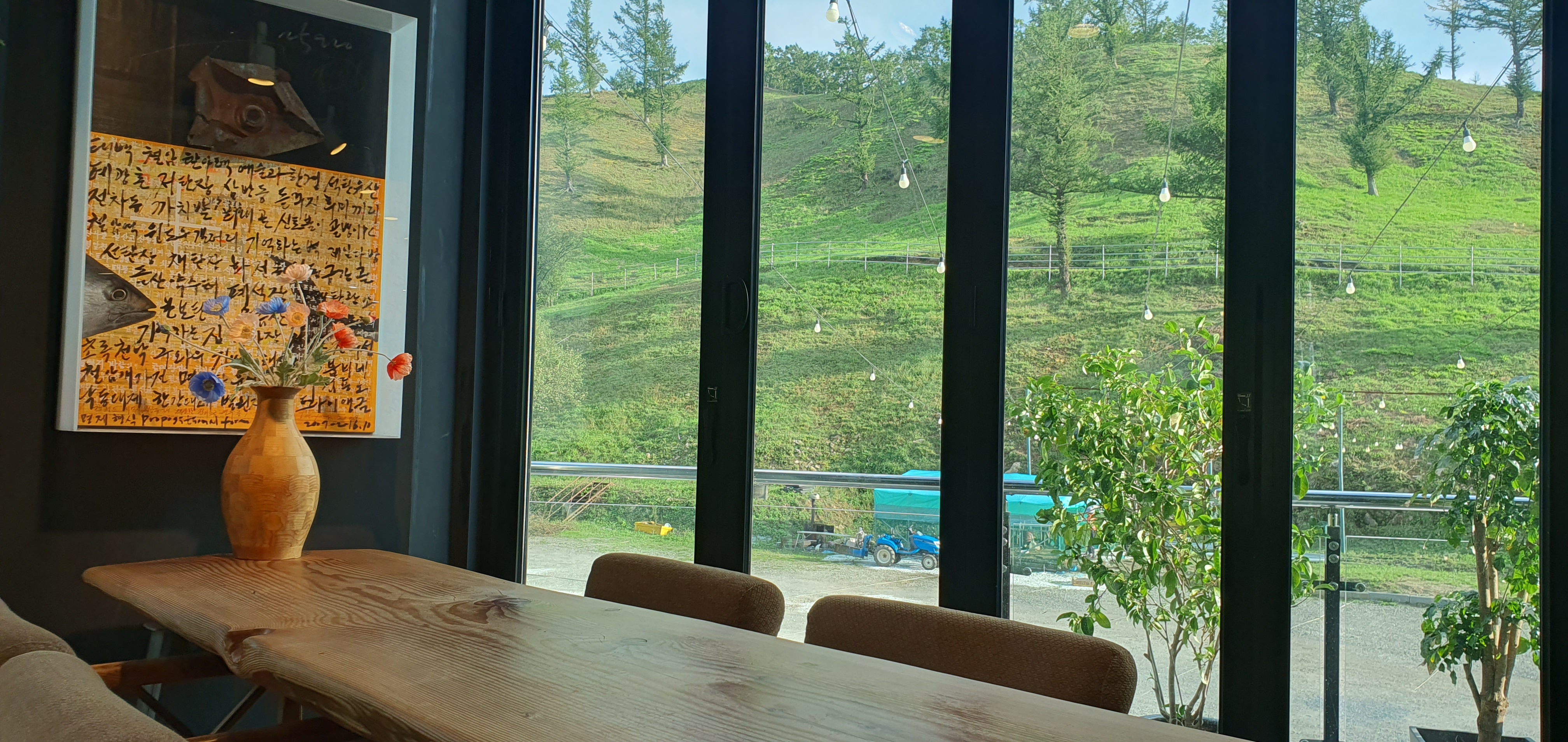 제일 긴 테이블에 앉아 초록언덕이랑 파란하늘을 멍하니 한참 바라보았네요.