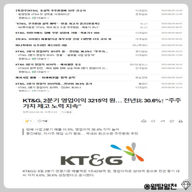 아무래도 국내 기업 중에 손에 꼽을 정도의 규모의 자사주 매입을 하는 주주환원 정책도 펴고 배당주로서의 매력도 있어 더 큰 시너지 효과를 낼 수 있지 않았나 생각해 봅니다.