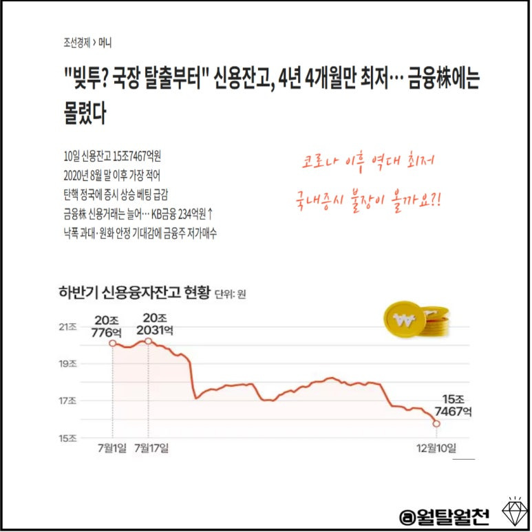 코로나 이후 신용잔고가 최저라고 하는데요.