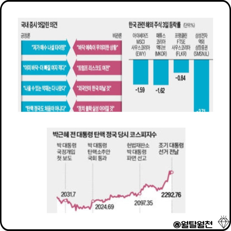 전문가들은 “정치 리스크에 따른 혼란이 심화하면 증시가 추가 하락할 가능성을 배제할 수 없다"라는 전망을 내놨는데 웬만한 악재는 다 나왔기 때문에 저가 매수를 고려해야 한다는 의견도 있습니다.