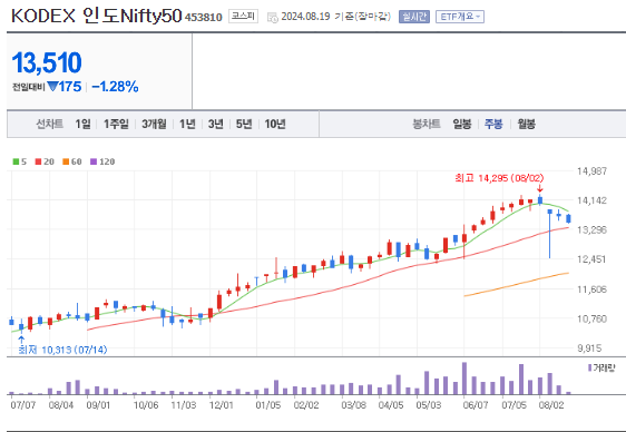 ‘TIGER 인도니프티50’와 ‘KODEX 인도Nifty50’에는 올 들어 각각 3847억 원, 3266억 원이 순유입되며 우상향하는 차트를 볼 수 있습니다.