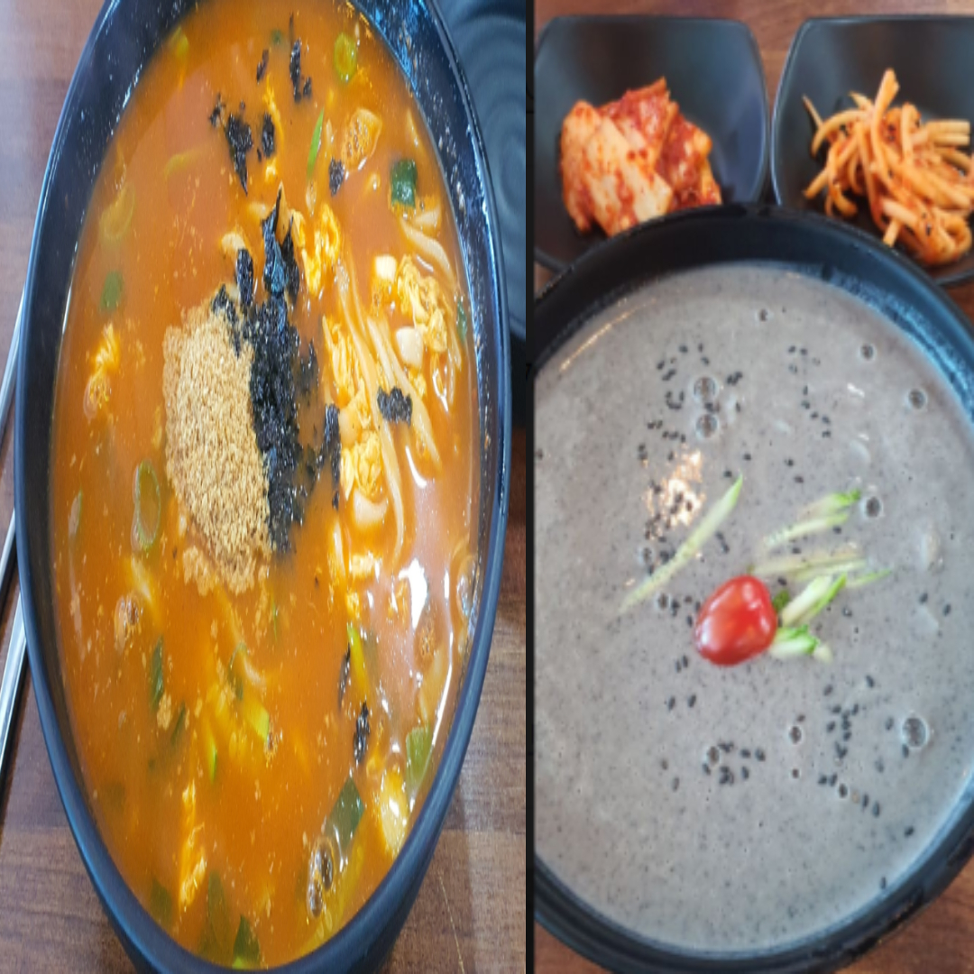 저는 황태장칼국수와 서리태 검정콩국수를 주문했습니다.