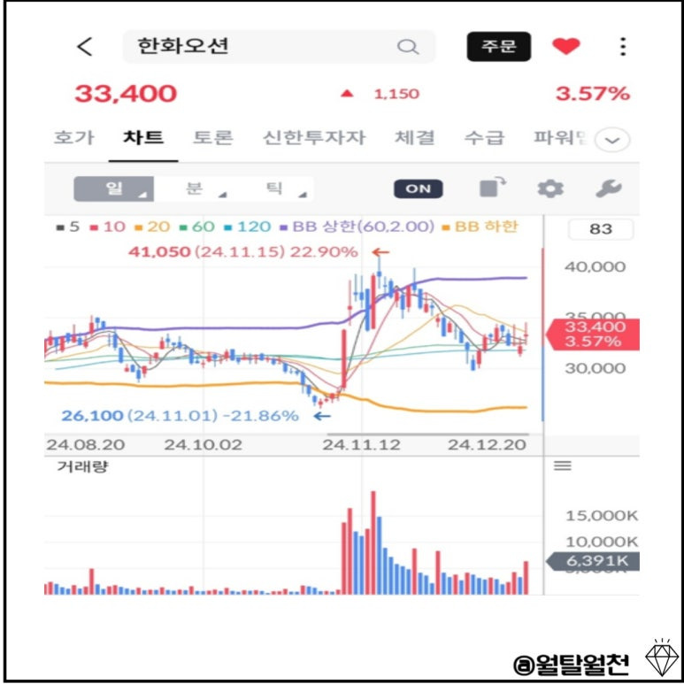 현재 한화오션의 일봉차트입니다.