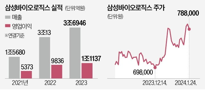 삼성바이오로직스 : 2023년 매출 3조6946억원, 영업이익 1조 1137억 원 / 24년 4분기 매출 1조 635억 원