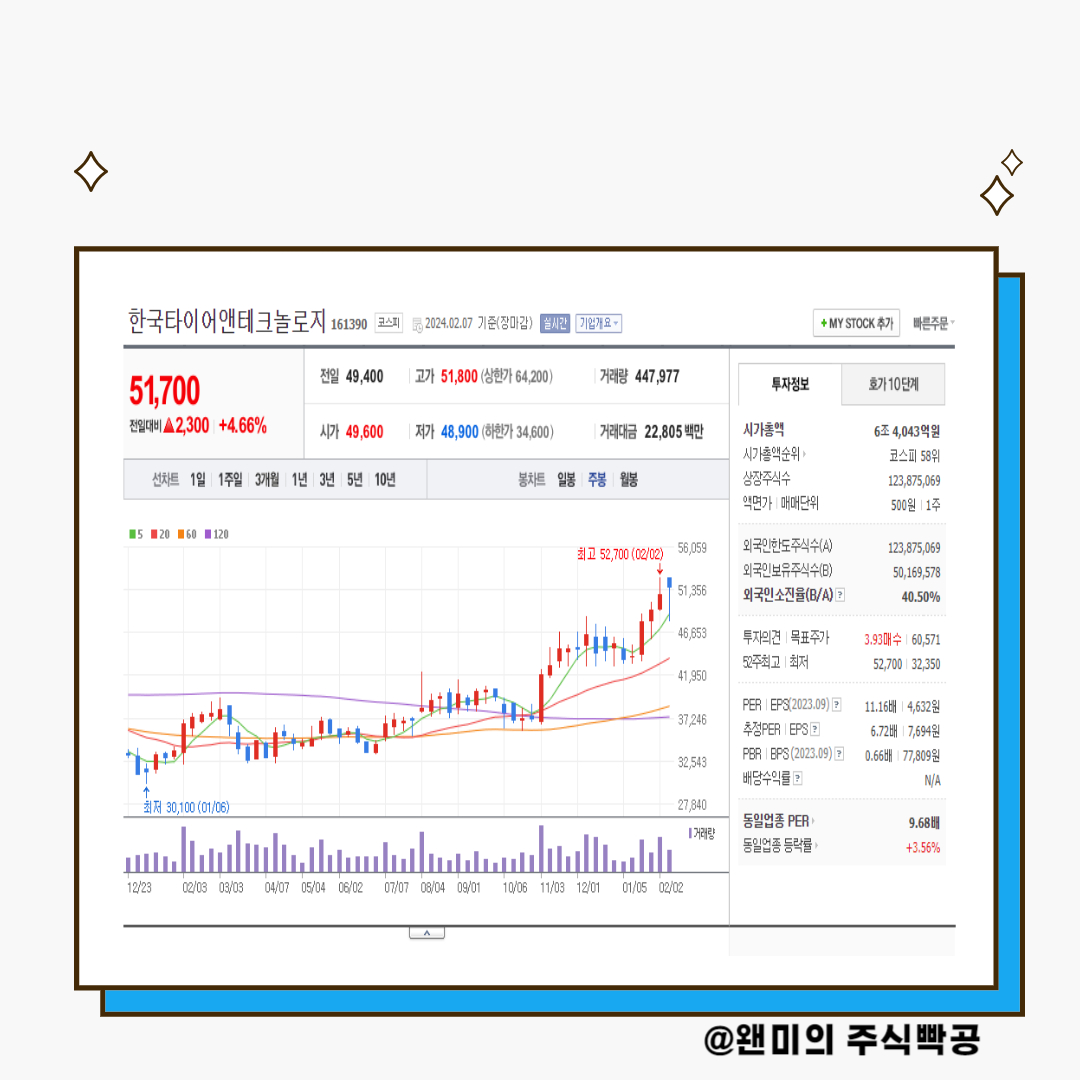 그래서 오늘 저PBR관련주인 한국타이어앤테크놀러지라는 기업에 대해 알아보겠습니다.