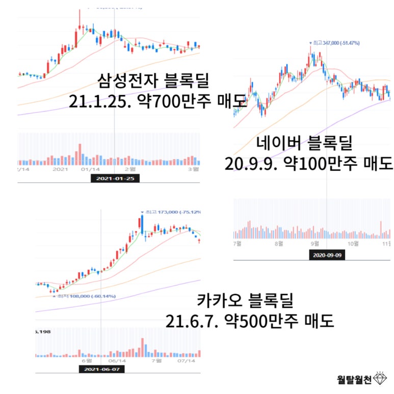 블록딜은 주로 대형 기업의 주요 주주나 기관투자자들이 대량의 지분을 매각하거나 매입할 때 이루어지는데 과거 블록딜 한 기업의 사례를 알아봤습니다.