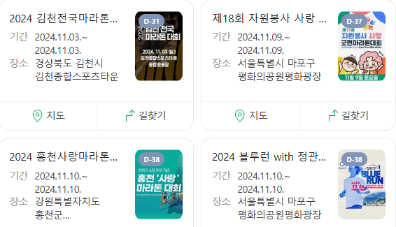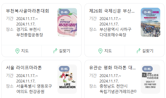 이 여세를 몰아 남아 있는 마라톤 일정이 있는지 알아봤는데 12월까지 마라톤일정이 꽤 있더라고요.