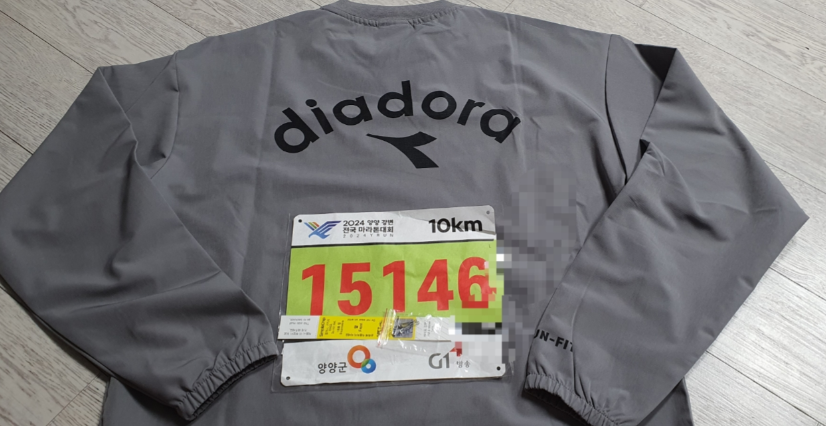 처음으로 도전해 본 양양국제마라톤 10Km 기념품과 등번호였습니다.