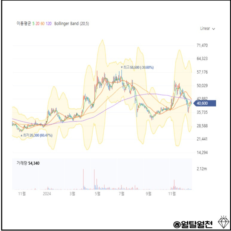 현재는 이평선들이 모이는 것을 볼 수 있죠.