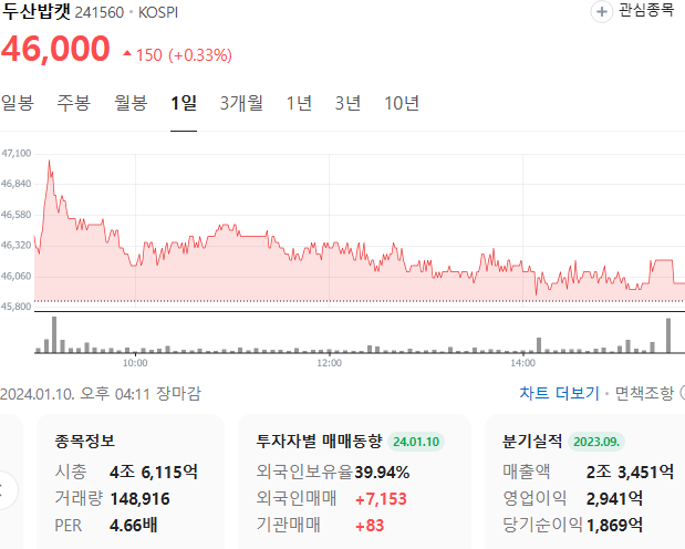 두산밥캣 - 네이버페이 증권 : 네이버페이 증권