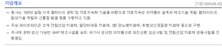 위고비와 같은 비만 치료제의 원료를 공급하는 기업으로 글로벌 제약사와의 협력을 통해 지속적인 매출 증가가 예상됩니다.