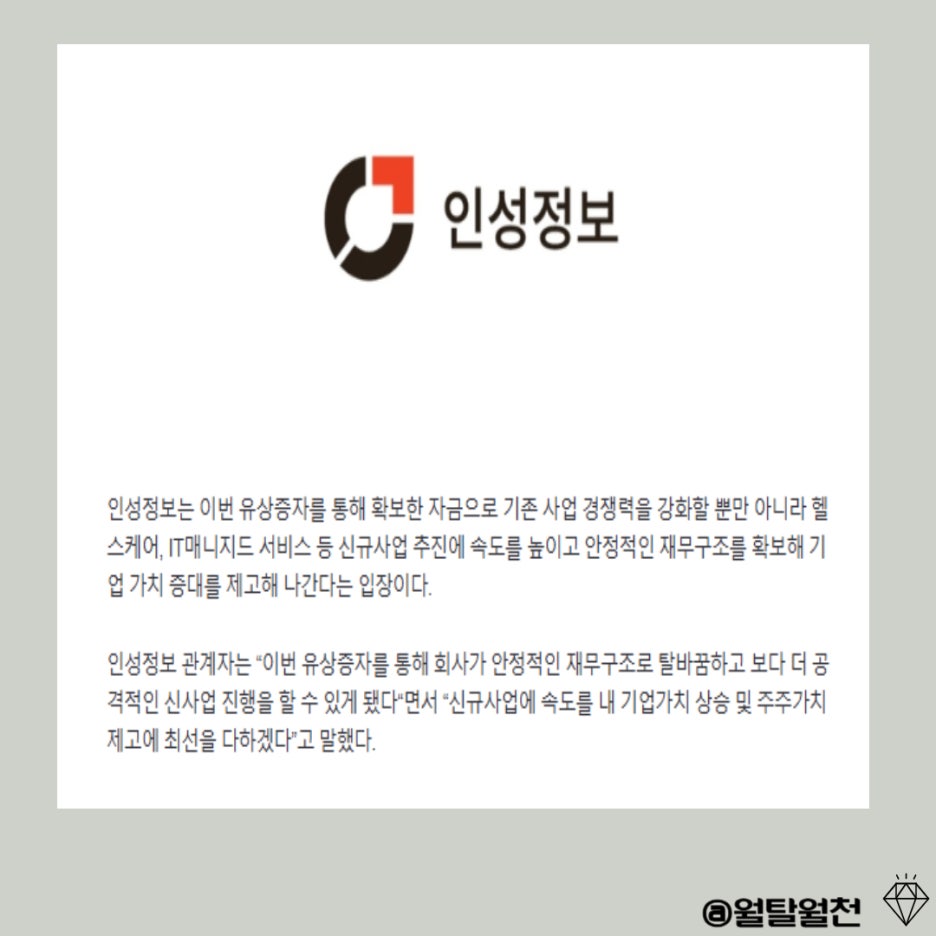 그럼 이 시점에서 인성정보는 왜 유상증자를 할까요?