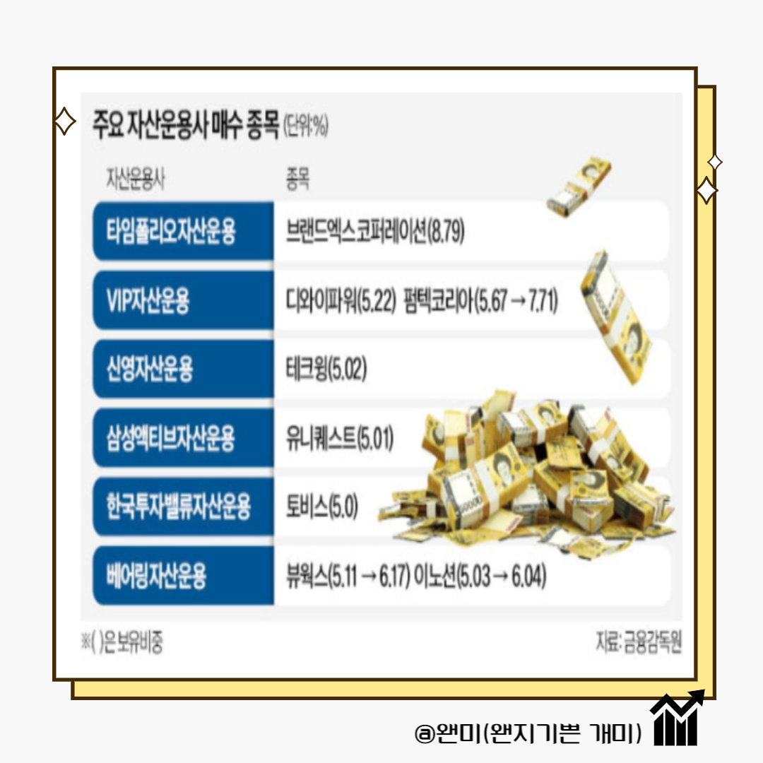 가치 투자를 지향하는 자산운용사들이 실적 전망이 좋지만 저평가된 종목들로 시총 3000억 원 미만의 중소형주들을 매수했습니다.