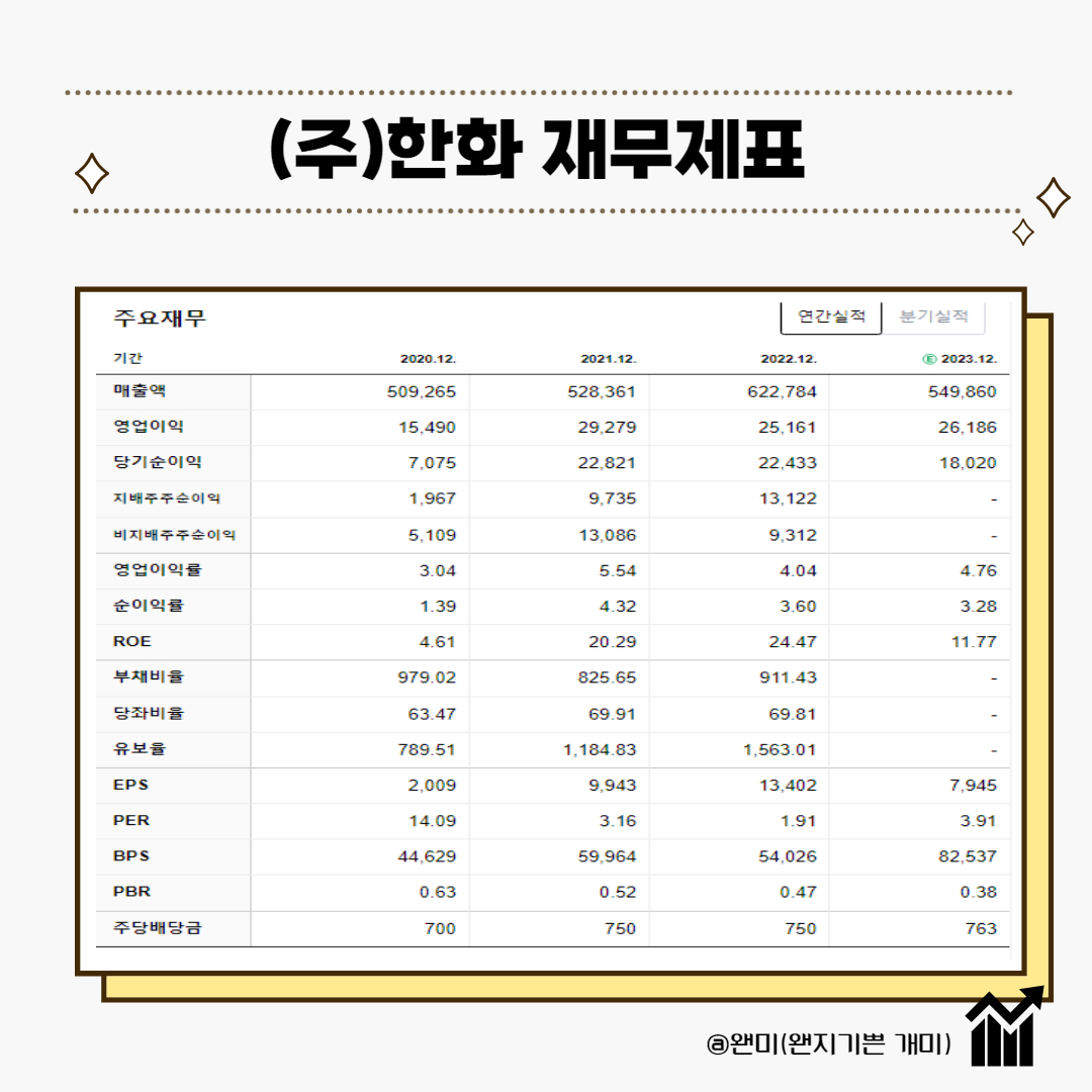 저 PBR기업 지주사인 (주)한화 기업분석