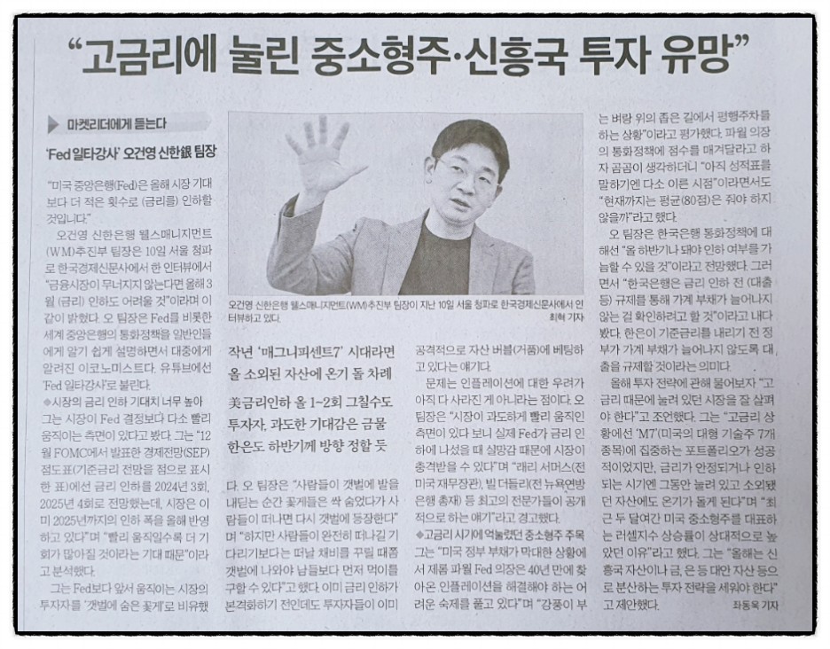 Fed일타강사로 알려진 신한은행 오건영 팀장의 언론 인터뷰가 보도됐는데요