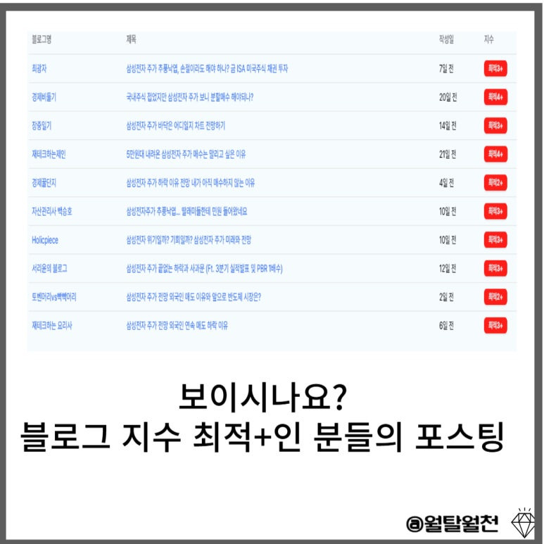 그럼 준최 블로거인 저에게는 삼성전자 주가는 쓸 수 없는 키워드였을까요?