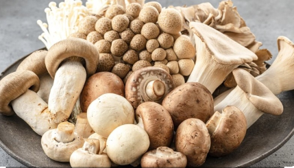 버섯은 80%가 탄수화물로 이루어져 있지만, 섬유질과 수분이 대부분입니다. 버섯에 있는 베타글루칸 성분은 항암효과가 있으며 에리타데닌 성분은 혈중 콜레스테롤 제거에 도움을 줍니다.