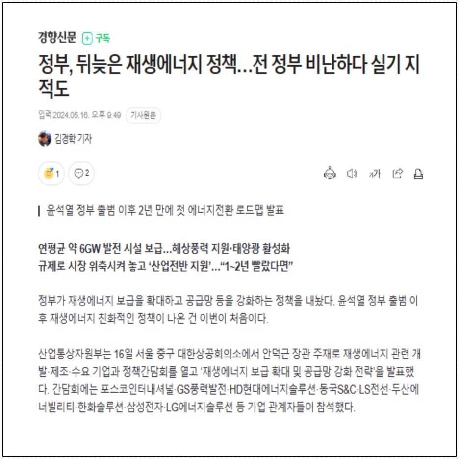 그리고 산업통상자원부에서 주재한 재생에너지 관련 간담회를 개최했는데요.