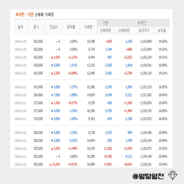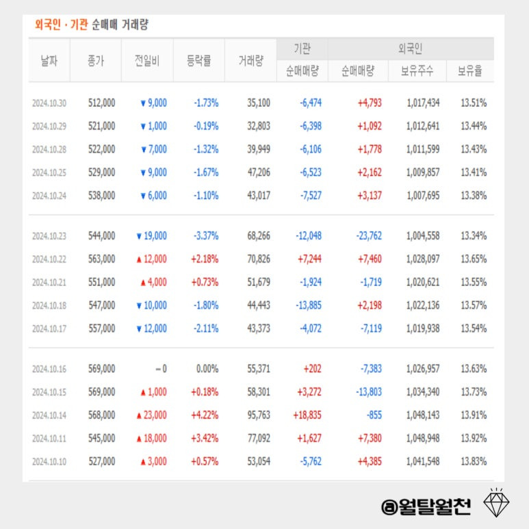 외국인이 지난주부터 매수를 하고 있지만 기관은 매도를 하고 있네요.