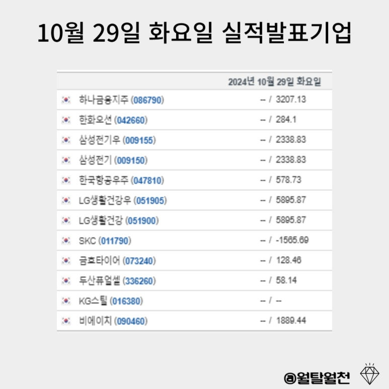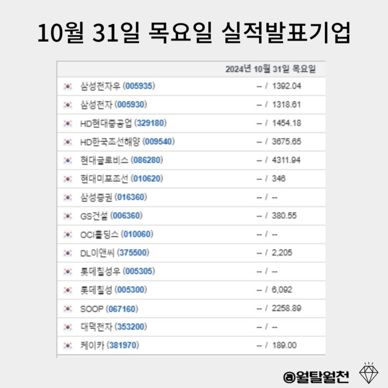 10월 28일~ 11월 1일 3분기 기업별 실적발표일