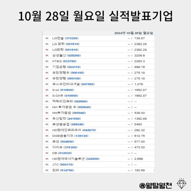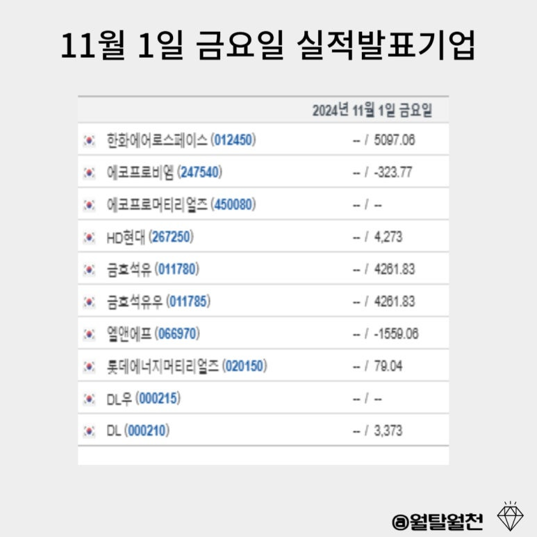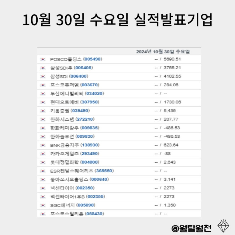 10월 28일~ 11월 1일 3분기 기업별 실적발표일