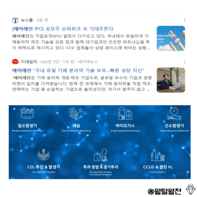 • 기업개요: 국내 유일 기체 분리막 기술 보유, 질소 분리막은 에너지, 항공, 방산 산업에 쓰임.