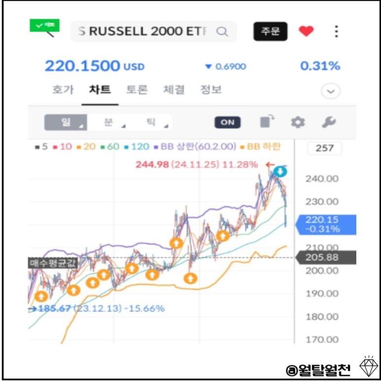 그래서 전 대형주보다는 중소형주에 투자를 해야 한다고 생각해서 러셀 2000지수 추종 ETF인 IWF에 적립식으로 투자를 하고 있습니다.