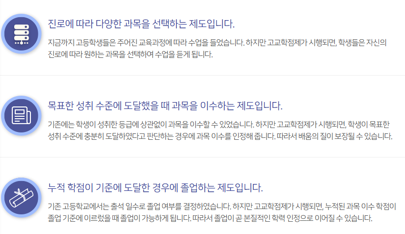 그런데 이제는 고교학점제라고 대학처럼 아이들이 자기가 원하는 과목을 선택해서 수업을 받는 방식으로 고등학교 수업이 진행된다고 합니다.
