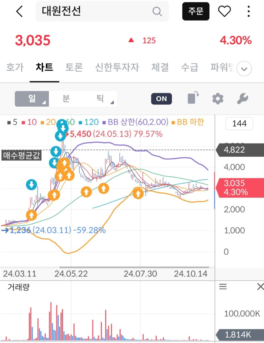 대원전선의 매수, 매도 화살표들 보이시나요???