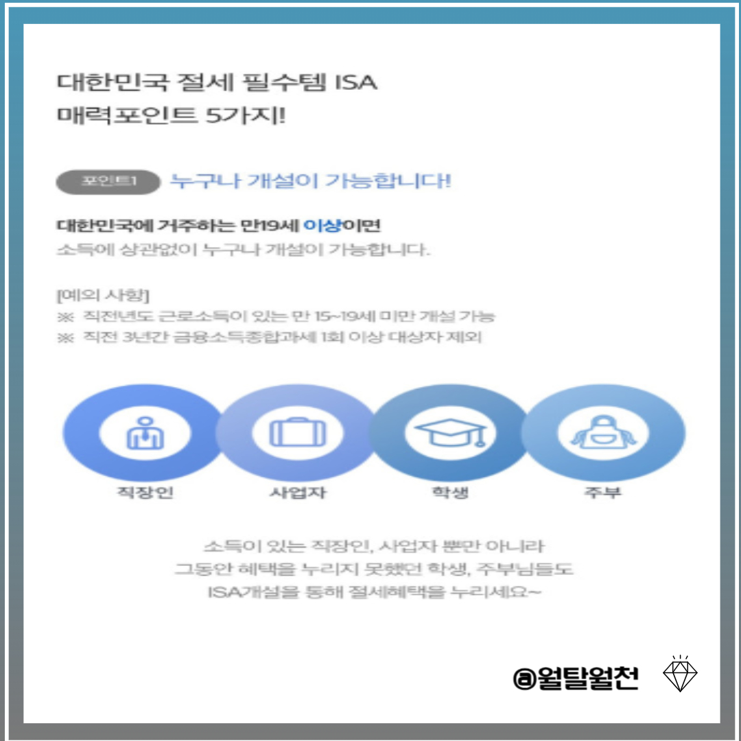 ISA란 개인 종합 자산관리 계좌를 뜻합니다.