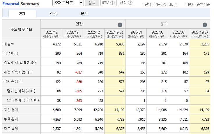 제무재표를 보면 꾸준히 매출액, 영업이익이 꾸준히 증가하는 기업임을 알 수 있습니다.