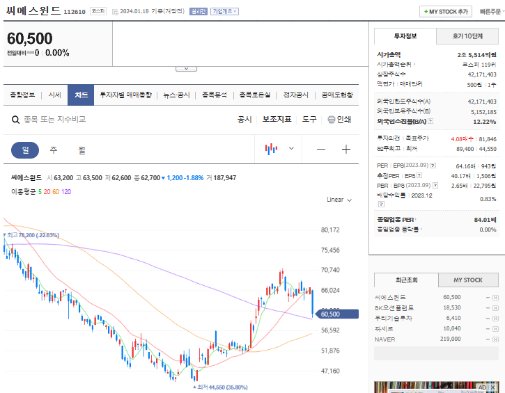 지난 13일 대만에서 라이칭더 총통이 당선되었는데요, 친환경 투자를 공언한 이 당선자의 정책 관련하여 해상풍력발전기의 하부구조물을 제조하는 SK플랜트 및 미국향 풍력발전업체인 씨에스윈드 등 그린에너지의 일환인 풍력발전 관련 기업들이 많습니다.